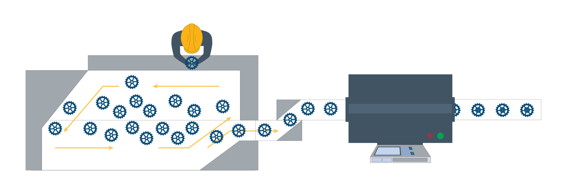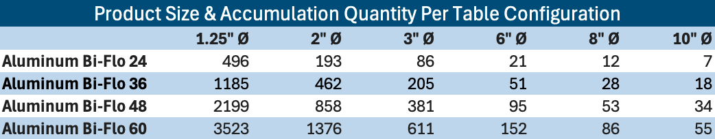 One Outfeed Lane: Used for applications where product needs to be introduced to a line in a single file, while a bulk amount of product is delivvered to the table.